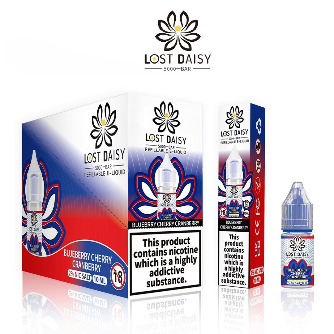 Fruit enthusiasts will like the sweet and tangy taste of the Blueberry Cherry Cranberry LOST Daisy Nic Salt 10ML eLiquid, which provides a distinctive vaping experience!