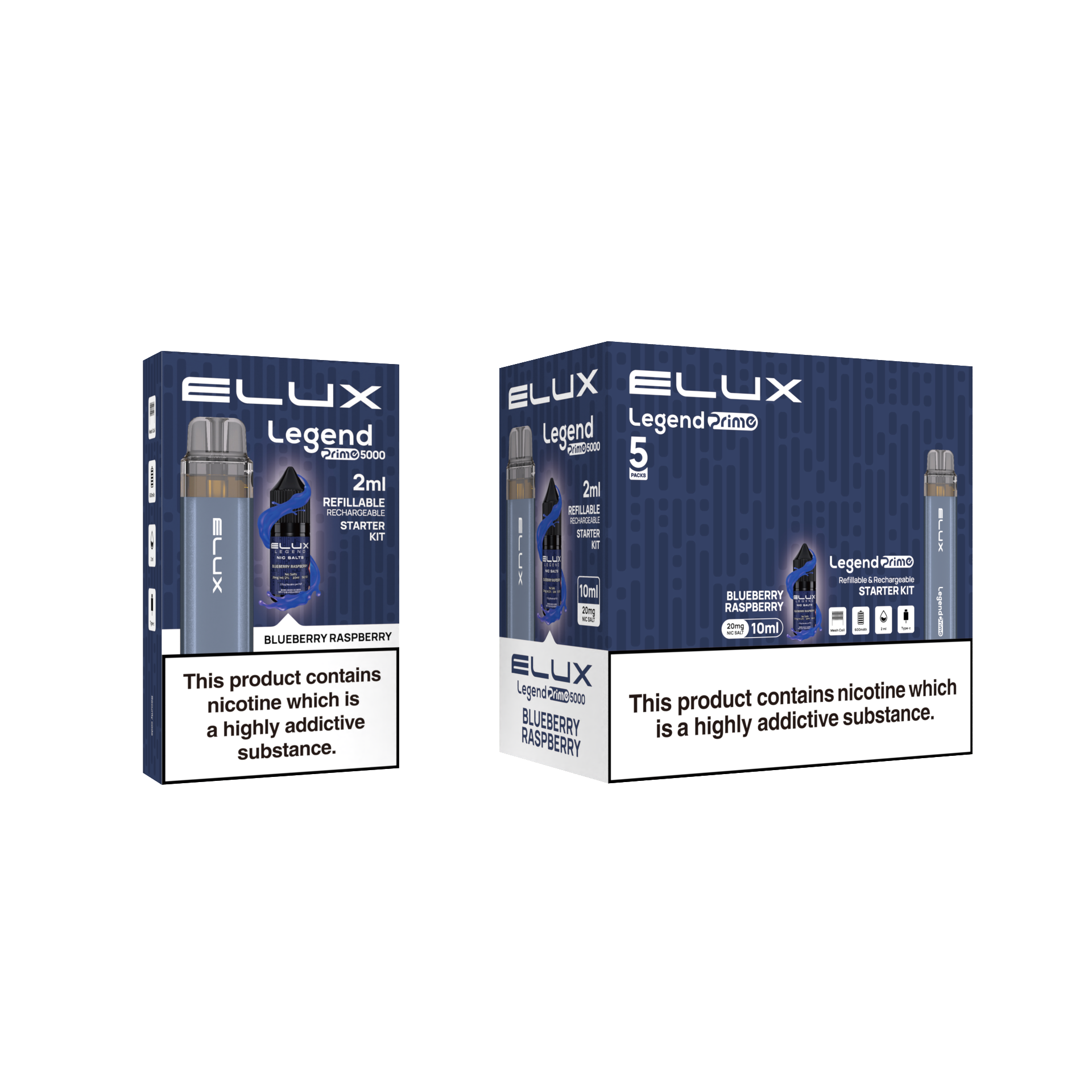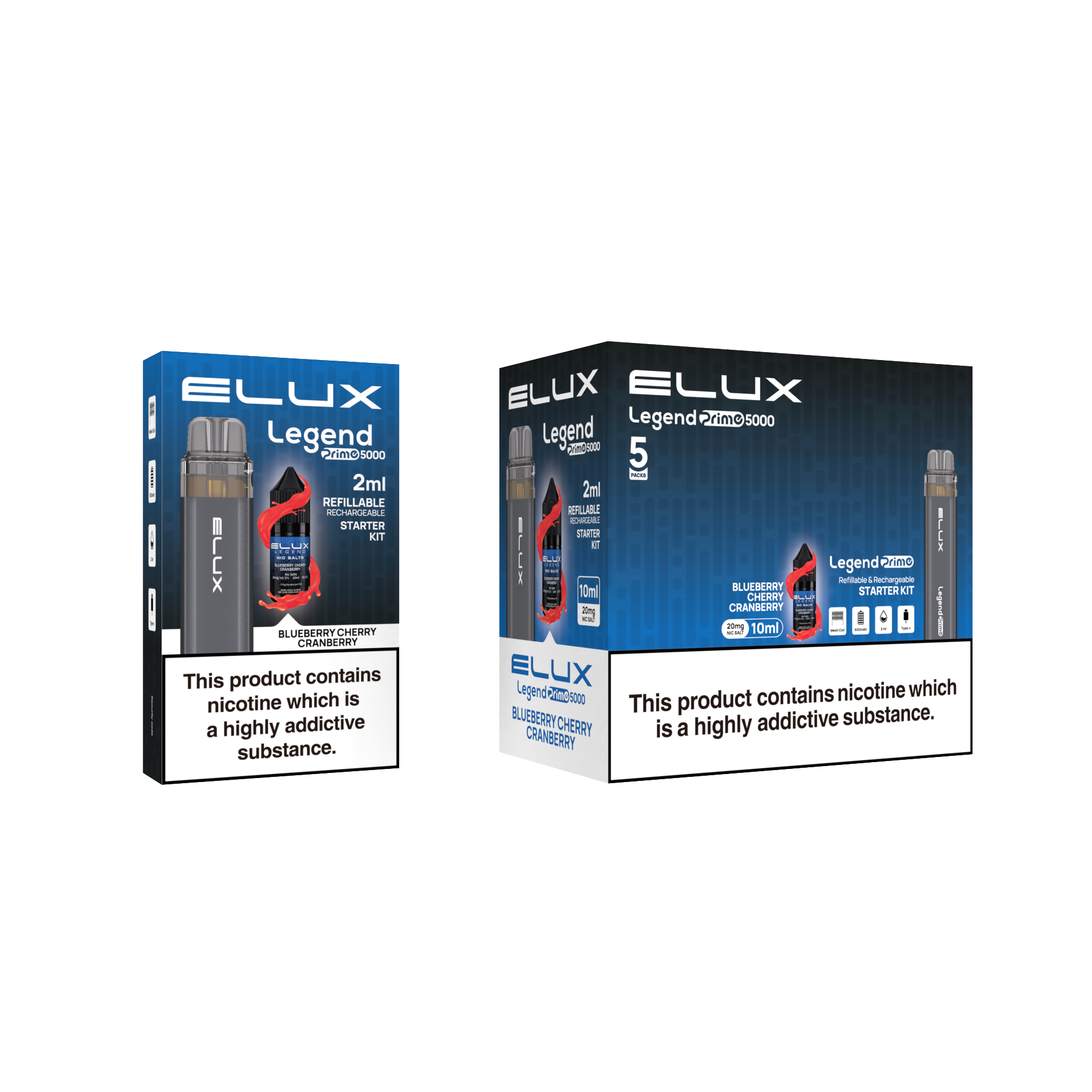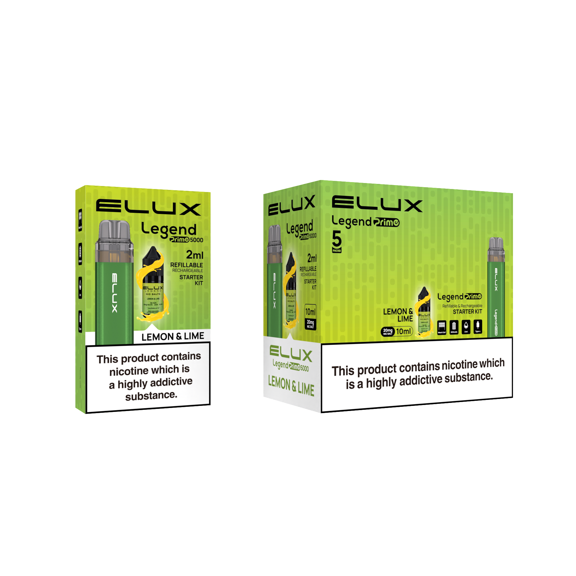 Enjoy a comfortable vaping experience with the Elux Legend Prime 5000 Refillable Pod Kit thanks to its refillable pods. Long-lasting use is provided by its strong battery, and carrying it about is made simple by its stylish style. To make the experience more personalised, the replaceable pods provide an infinite variety of flavours.