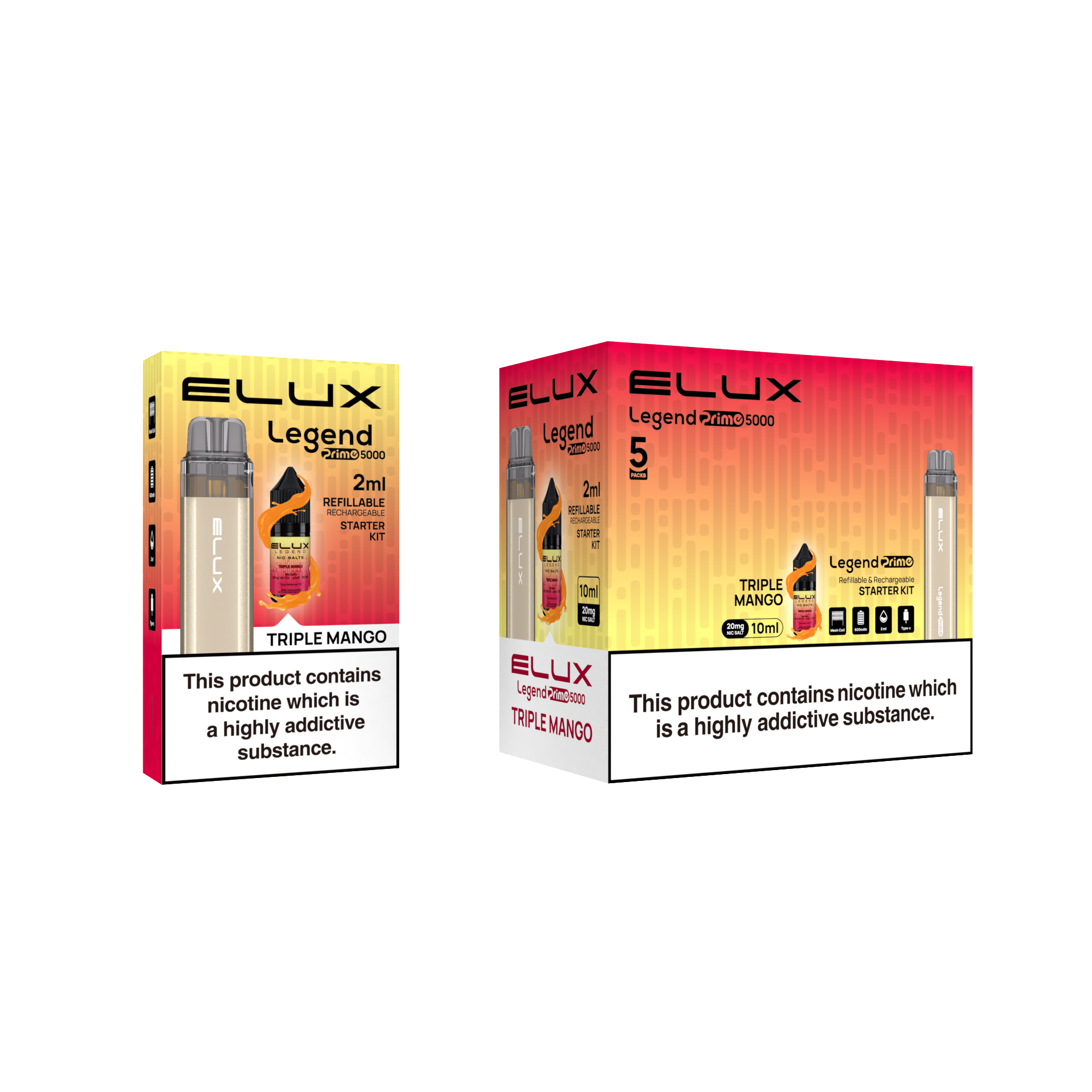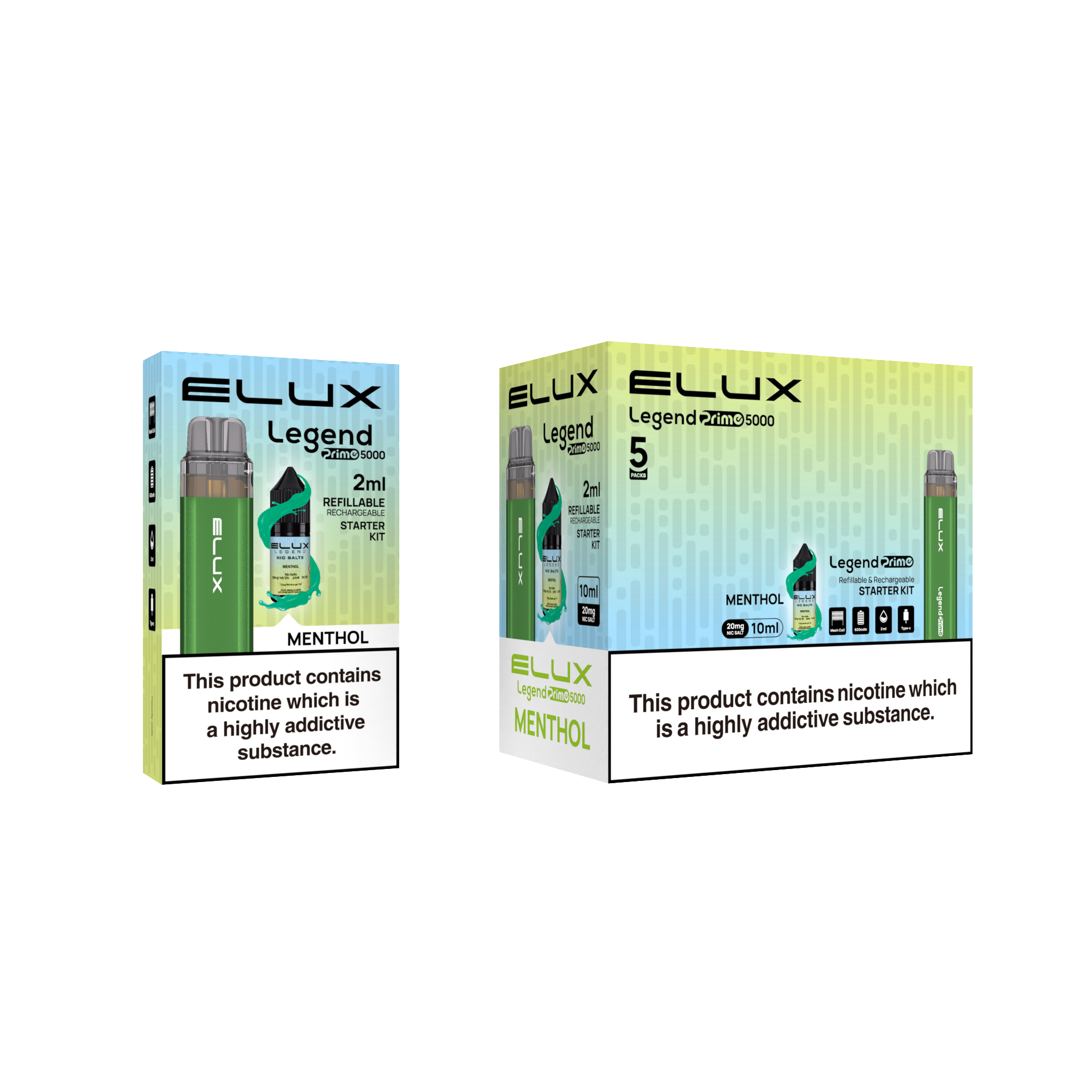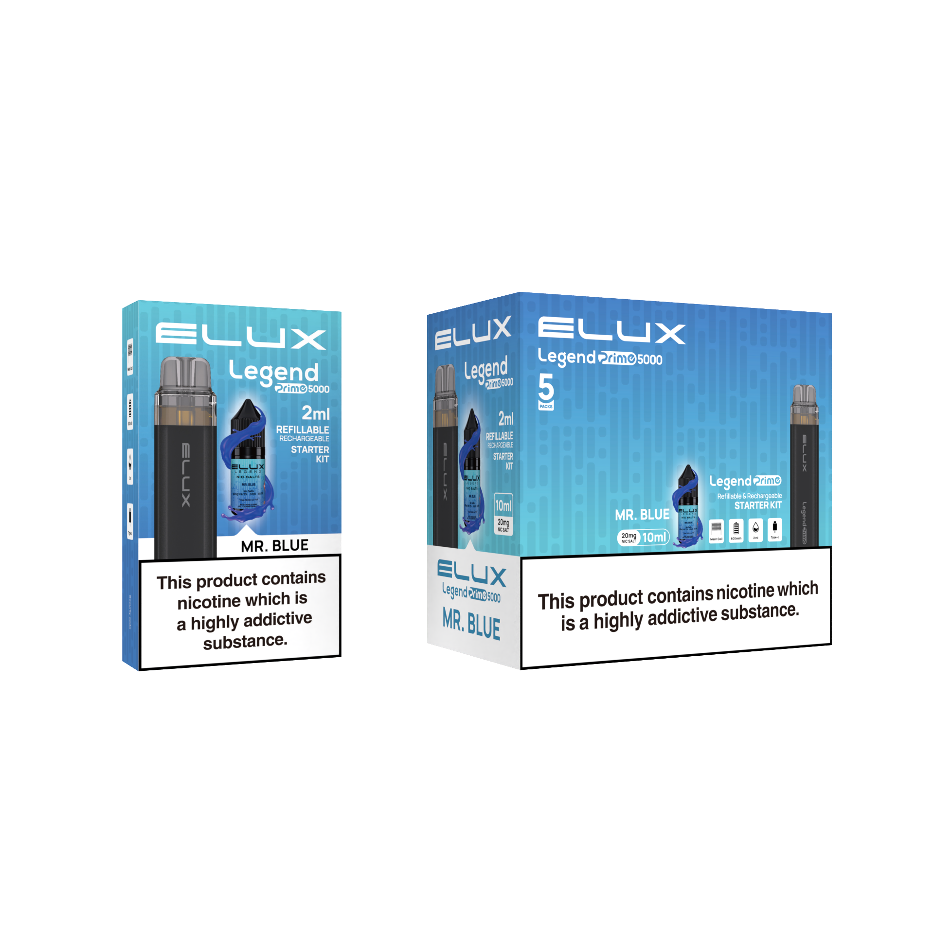 Enjoy a comfortable vaping experience with the Elux Legend Prime 5000 Refillable Pod Kit thanks to its refillable pods. Long-lasting use is provided by its strong battery, and carrying it about is made simple by its stylish style. To make the experience more personalised, the replaceable pods provide an infinite variety of flavours.