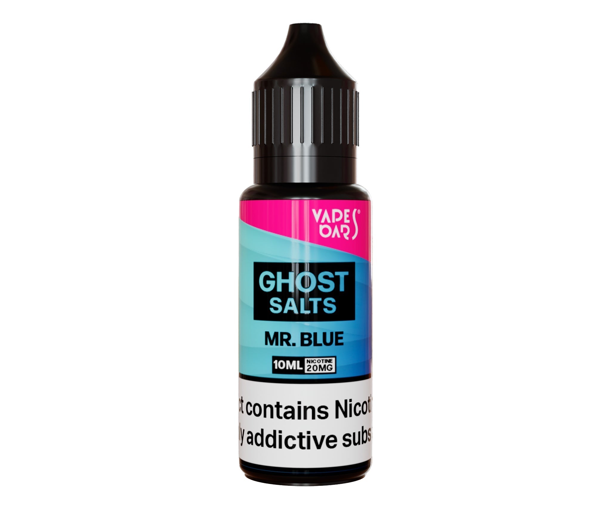 Mr. Blue from Ghost Salts is a fantastic combination of fresh berries that are sweet and juicy, with a hint of anise and a cool menthol sting. developing into an e-liquid that offers a fruit and ice burst.
