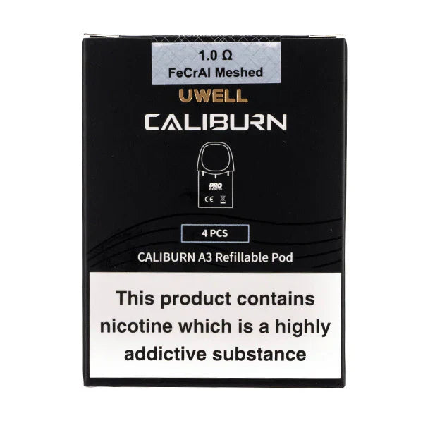 The 2 ml capacity Uwell Caliburn A3 Replacement Pods are made to work with the UWELL Caliburn A3 Pod System. There is a top-fill port and a detachable mouthpiece on the refillable UWELL Caliburn A3 replacement pod. The pod's visibility makes it simple to monitor the e-juice level. Additionally, a snug fit is guaranteed by the magnetic connection between the pod and the gadget. The Caliburn A3 Replacement Pod has a built-in 1.0 ohm meshed coil and is available in a 4-Pack.