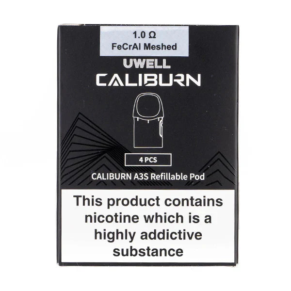 Mouth-to-lung (MTL) vaping is the intended use of Uwell's refillable Caliburn A3S pods. These four refillable fixed coil pods are exclusive to the Caliburn A3 and A3S vape kits. They are sold in packs of four.