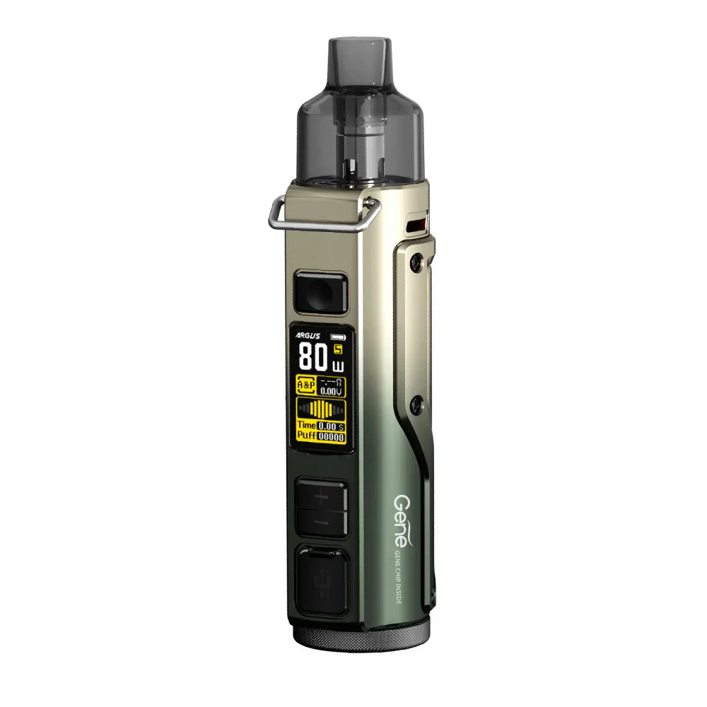 The Voopoo Argus Pro pod gadget has a sleek appearance and feel thanks to its lightweight, impact-resistant zinc alloy construction and leather panels. The Argus Pro offers a longer vaping experience and faster recharge with to its integrated 3000mAh battery and USB-C charging. The Argus Pro, powered by the exclusive GENE.TT chipset, has five to eighty-watt output capabilities and lightning-fast firing modes. Many safety features, including as overload, short-circuit, overcharge, and overcurrent output protection, are included with this.